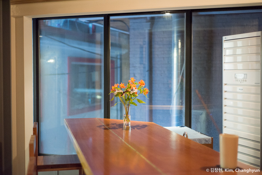 그래도 딱 들어가면 제법 긴 바와 적당한 조명에 꽃이 있다.