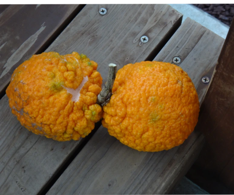 임파첸스(한국에서도 가로에 많이 심는데 보통 어른든은 '하와이 물봉선화'라 부르는 꽃)가 만발한 동산이었다. 작물로 기르는 것이라는 설명을 듣고 어디 농장에라도 왔나보다 했더니, 아저씨가 잠시 어디 갔다오더니 잠바 앞섶에 잔뜩 과일을 따 오셨다. 생긴 것은 탱자 같은데 크기는 귤 정도이고 맛은 오렌지에 가까웠다. 밀감이냐고 물었더니 비슷한 건데, ‘단깡’이라고 했다. 야쿠시마의 특산물이라고. 말하자면 서리를 해 오신 것이다.