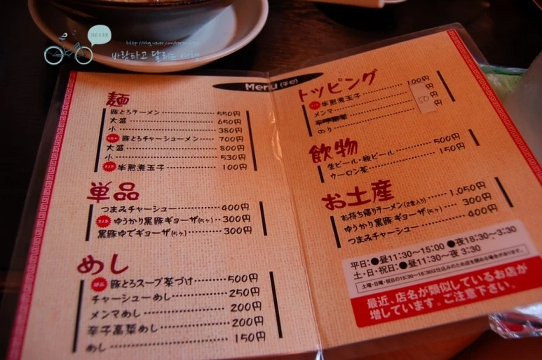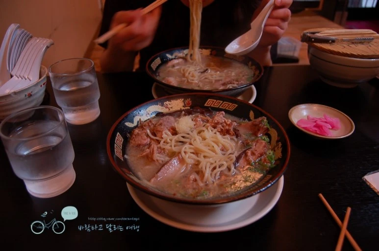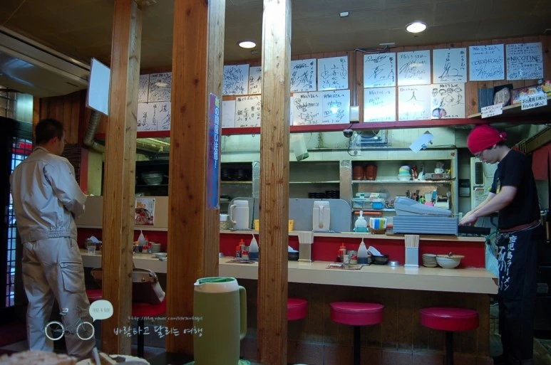 선택한 메뉴는 라면. 라면은 일본인들이 즐기는 음식인데 사골을 우려내어서 해 먹어야 하는 불편함을 극복하기 위해서 개발한 것이 인스턴트 라면이란다. 우리나라에는 그 인스턴트라면이 들어와서 그것이 라면의 전부로 알고 있지만 일본에서는 가게마다 자신의 맛을 꾸준히 연구하고 지키는 제법 맛 좋은 라면집들이 있다. 그래서 길에서 전단지를 나눠주는 아가씨한테 가장 맛있는 라면집을 소개해 달라고 했다.