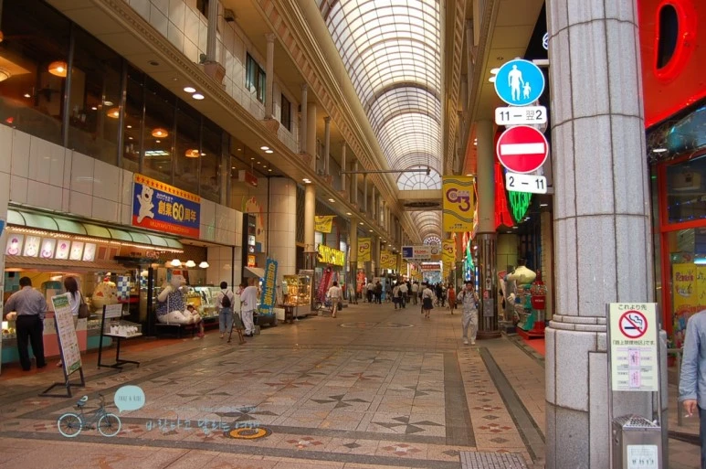 덴몬칸은 말하자면 부산의 서면이나 남포동같은 곳인데, 건물과 건물 사이에 아치형 지붕을 만들어서 날씨와 관계없이 쇼핑을 즐길 수 있도록 해 두었다.