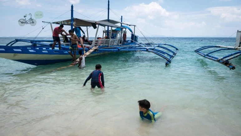수심이 완만해서 배에서 내리면서 허벅지까지 물 속에 들어가야만 했다.