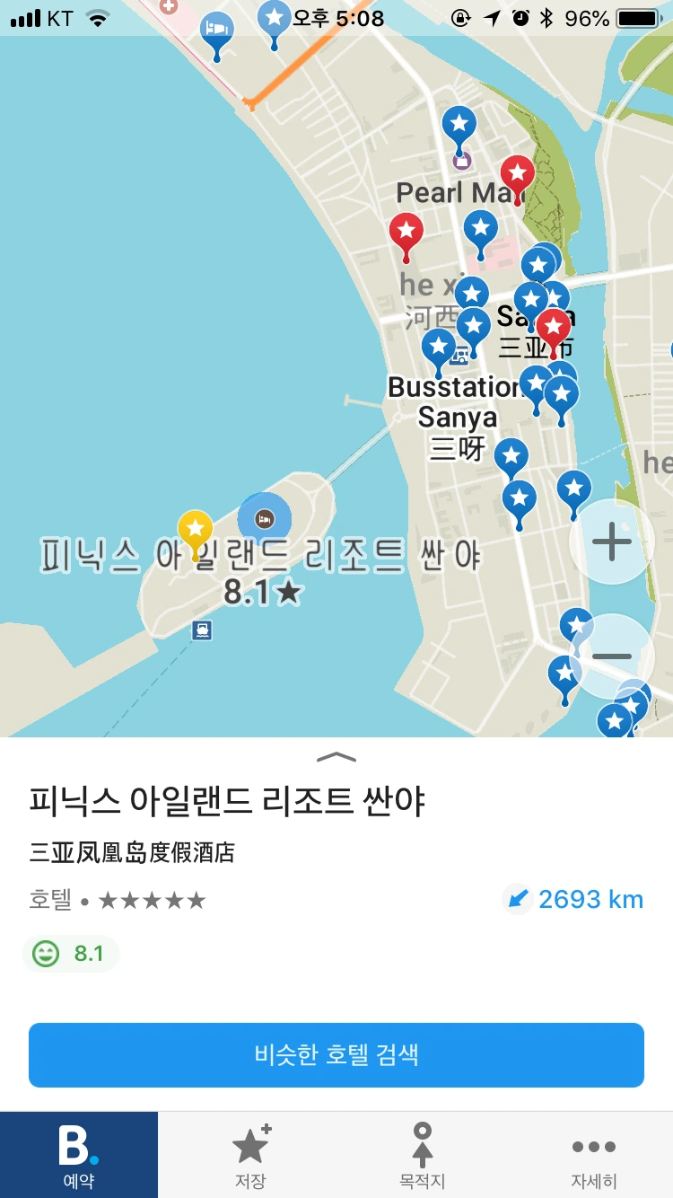 그러다 다운로드 받은 지도 상에 호텔들 위치 정보와 가격 정보가 올라온다. 주로 Booking.com에서 스폰을 받는 것 같다.