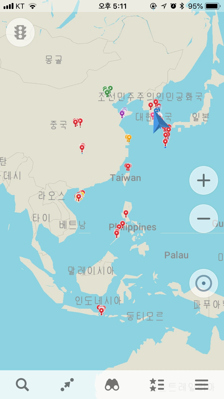 국내와 전세계에 내가 표시한 (방문한) 지점들이 점점 늘어가는 재미까지 있다는...
