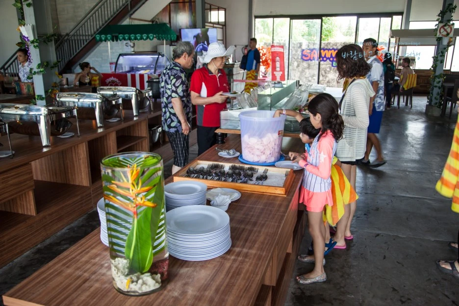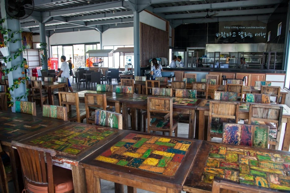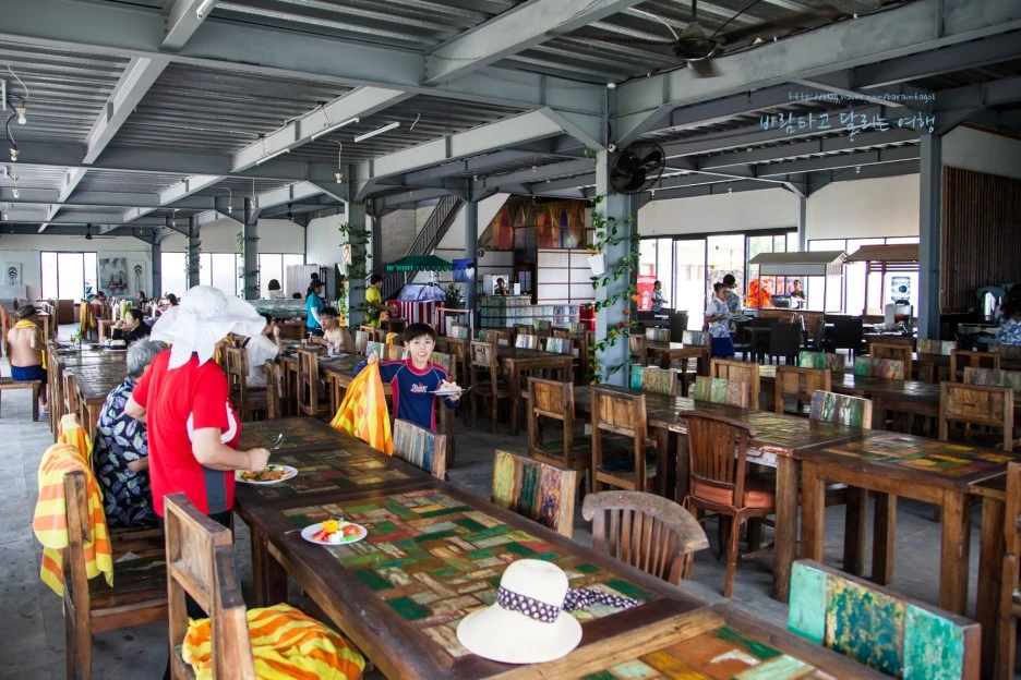 개인사물함까지는 아니지만 자물쇠까지 달린 간단한 박스를 줘서 개인용품은 신경쓰지 않아도 된다. 실제 식당은 빌라에 딸린 메인레스토랑인데, 아마도 마린워크 업체와 계약을 맺어서 운영되는 듯.