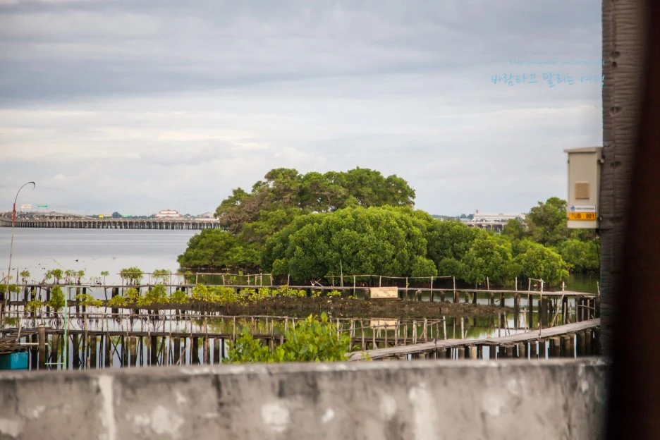물 속에 뿌리를 내린 맹그로브들이 바다 위에 숲을 이루고 있는 독특한 풍광과 양식하는 분이나 낚시꾼들이 오가는 허르한 나무 데크가 아름다운 선을 만들어 내는 곳이다.