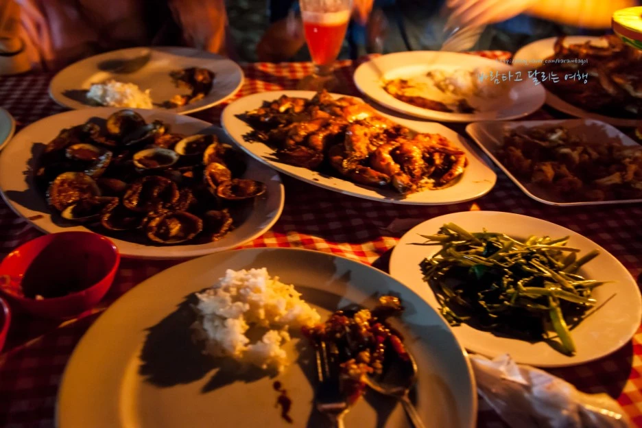 석양이 완전히 끝날 때까지 일부러 사진찍을 시간을 준 건지, 식사는 사위가 완전히 어두워지기 시작할 때쯤 되어서야 나왔다.