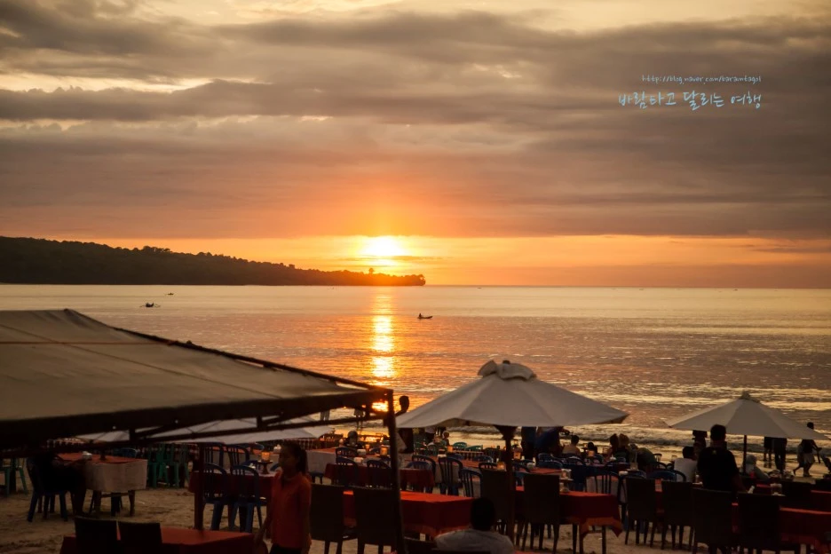 덴파사르 쪽에 가까운 쁠랑이에서 마시지를 받고, 베노아 항 바다위를 가로 지르는 고속도로를 타고 짐바란으로 간다. 빙 둘러가는 느낌이지만 퇴근시간과 겹쳐 공항 앞으로 갔다가는 노을이고 뭐고 다 놓친다는 아르민의 선택!