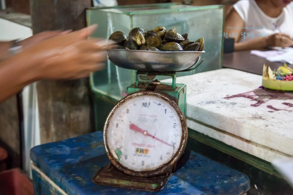 마리수로 계산하지 않는다. 무게를 달아서... 해산물의 천국 맞다^^