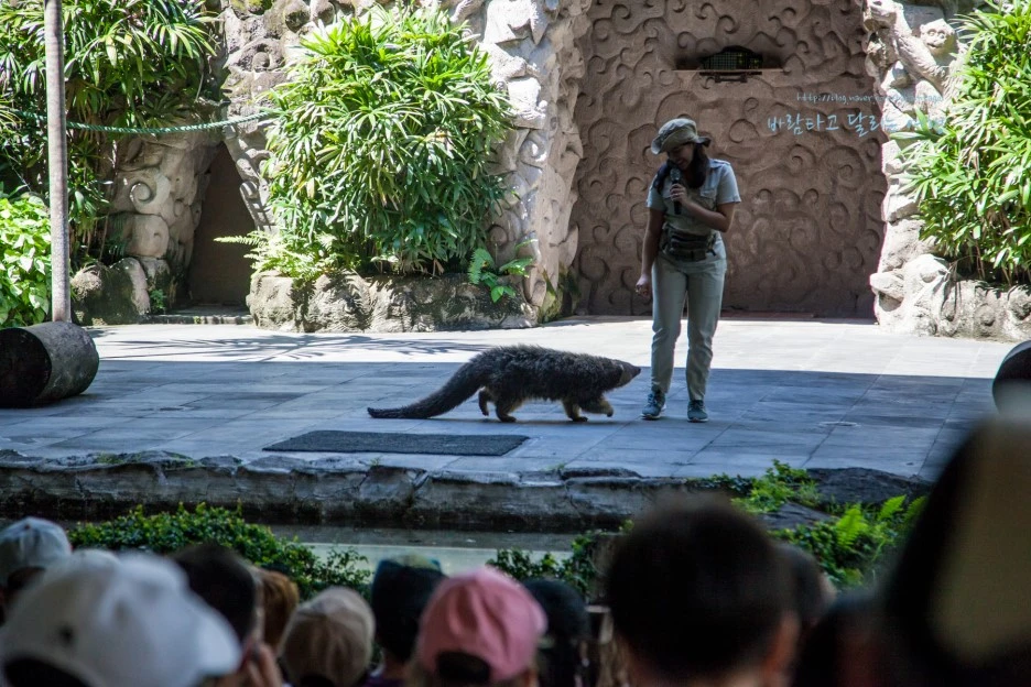 밝과 활기찬 직원들과 이런 환경이라면 동물들에게도 괜찮지 않을까 싶은 첫 번째 동물쇼.