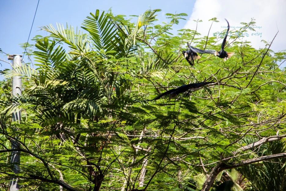 한 팔을 뻗으라는 주문과 동시에 어느 나무에서 큰부리새 투칸이 큰 날개로 활공을 하더니 그 팔에 안착을 해 버린다. 저 총각 순간 숨 넘어가는 줄^^