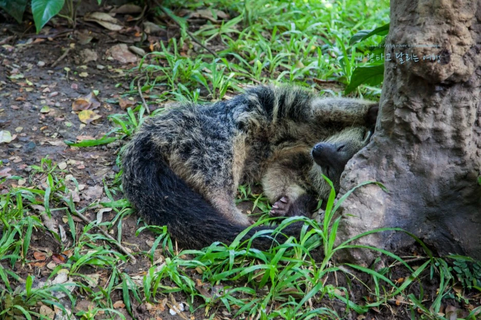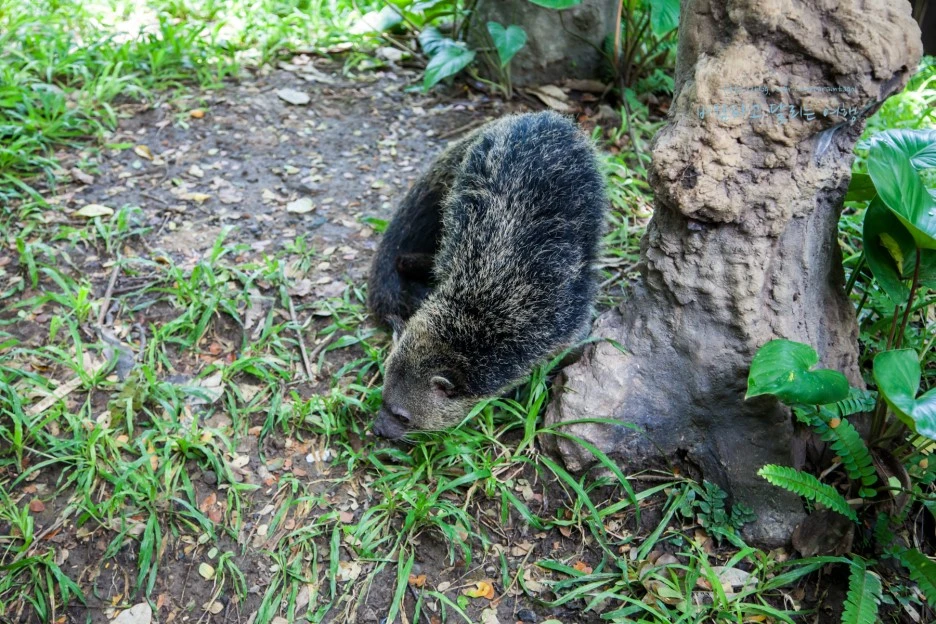 이렇게 생긴 놈이다. 베어캣이라고도 부른단다. 하는 짓이 느릿느릿한데, 너구리 처럼 생겼지만 더 크고 곰보다는 작고 꼬리가 몸길이 만큼이나 길고 풍성한 털을 가직 있다.
