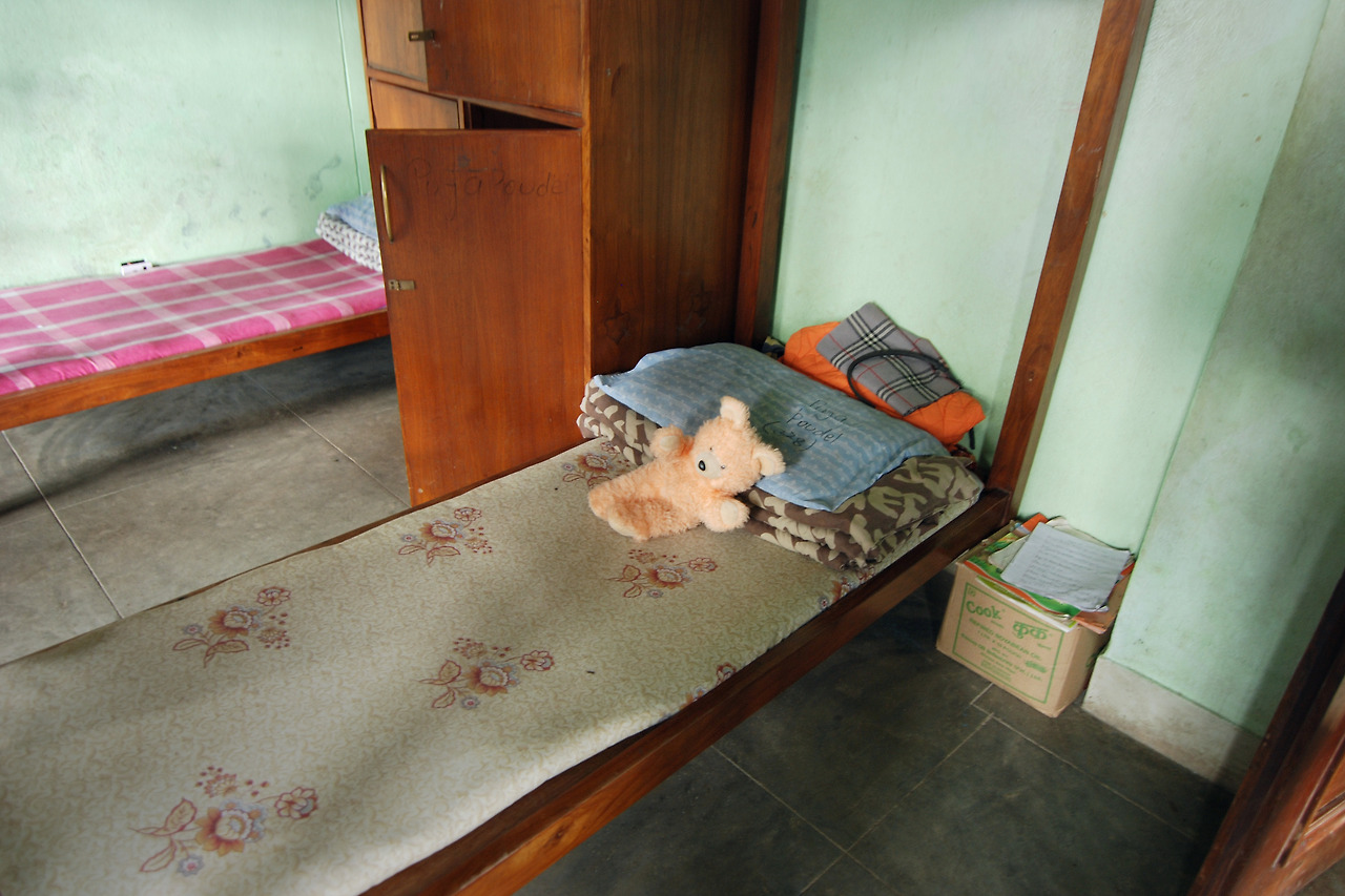 폭이 70센티를 겨우 넘을까 싶을 정도로 좁은 침대 위에 Puja Poudel(뿌자 포우델)이라고 쓰인 아이의 베개가 눈에 들어온다.