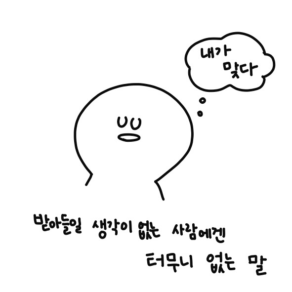 이 문제는 모든 인간관계에서 적용된다. 나도 누군가를 쉽게 내 기준으로 판단해서 생각하는 일이 많았고 그건 어쩔 수 없는 일이라고 생각한다. 자신의 경험을 토대로 생각할 수 밖에 없는게 개인이니까. 결국 오해를 풀기 위해서는 대화가 필요하고 서로가 서로를 이해하려는 노력이 필요하다.