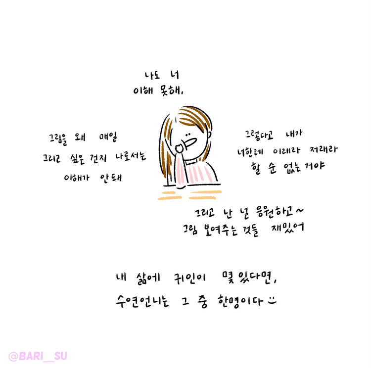 타인의 시선이나 말에 흔들리지 않으려 노력은 하지만 완전히 자유롭지는 않다. 그래도 다행인 건 어느 정도 그 말들을 견뎌낼 수 있는 힘이 조금씩 내 안에 자리잡혀간다는 것이다.