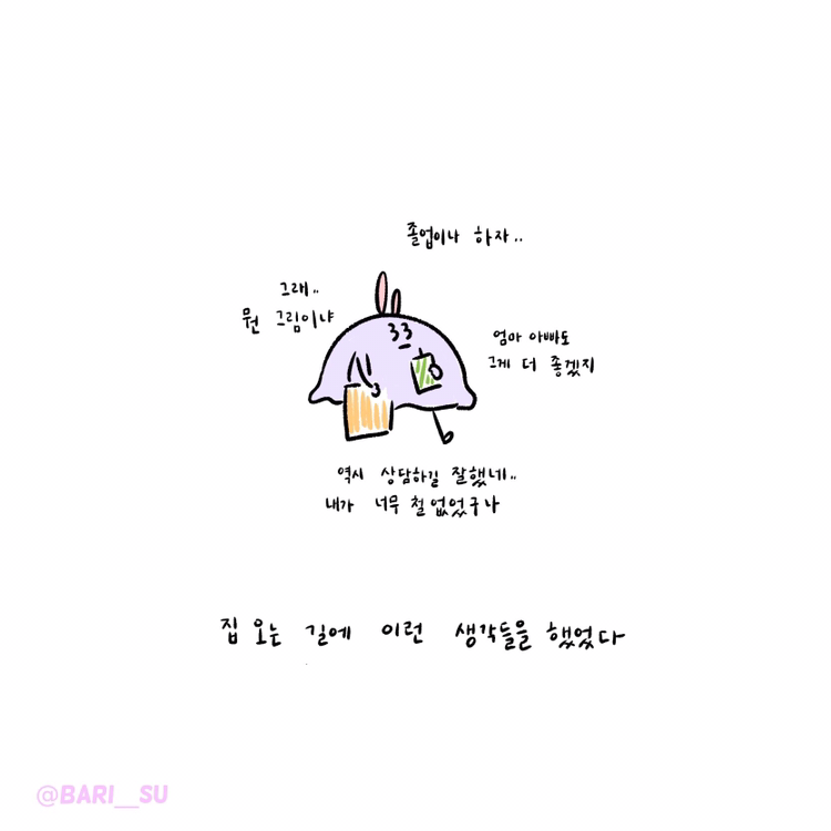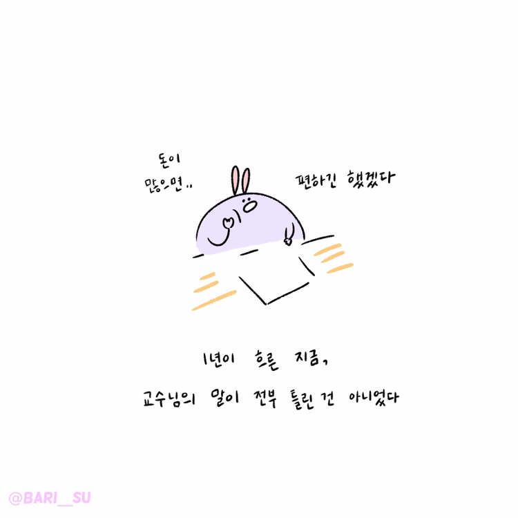 교수님과의 면담은 오래오래 나에게 기억되는 일 중 하나고, 내가 더 단단해짐을 느낄 수 있게 해준 일이다. 비록 그 당시에 교수님에 대한 원망도 크고 나 자신에 대한 실망도 컸지만, 지금은 다르게 생각하며 받아들일 수 있다. 시간이 흐른 덕분일지도 모르지만 말이다.