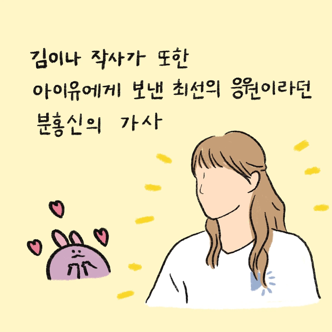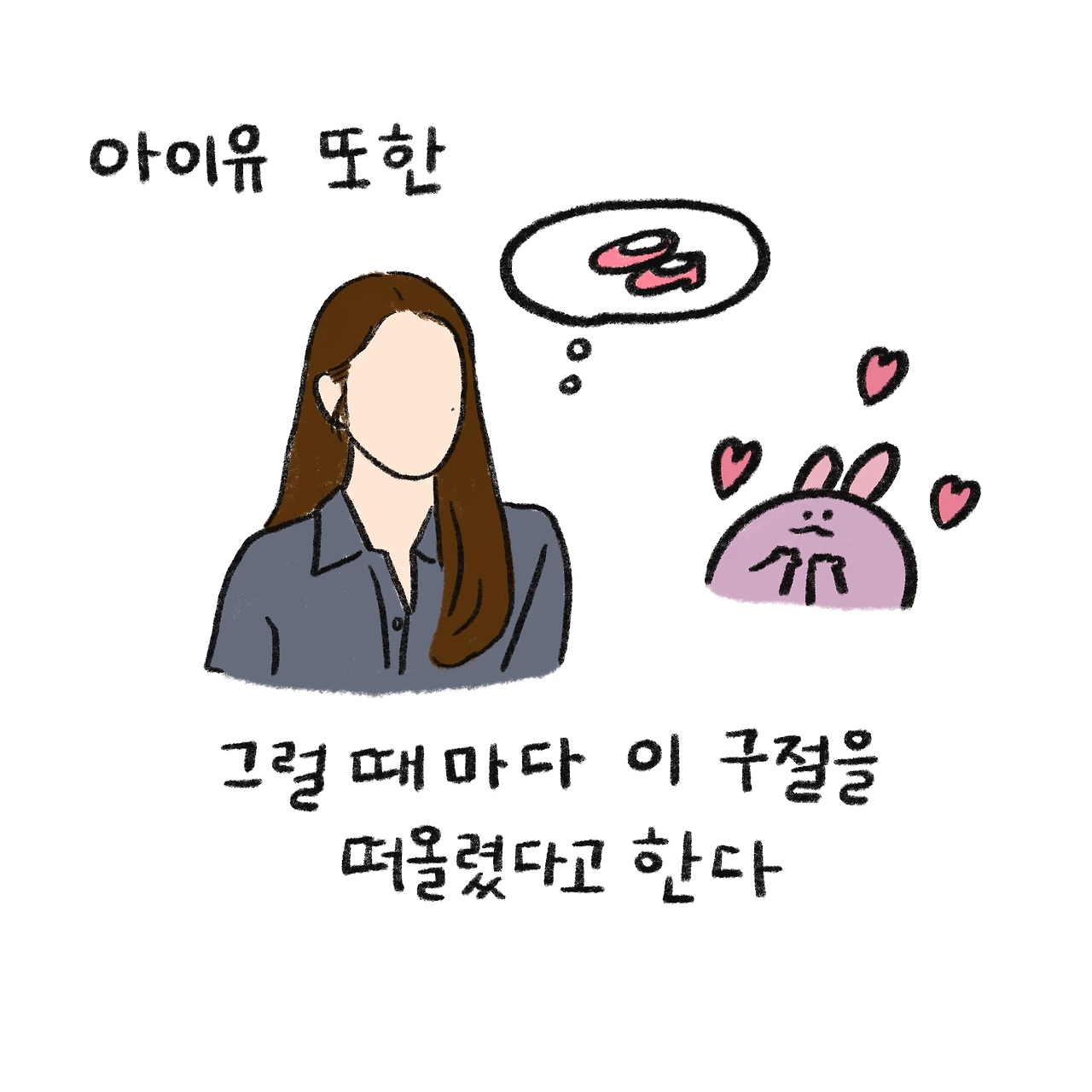 그녀의 말에 따르면 그 구절은 곧 자신의 이야기를 펼치게 될 아이유에게 그녀가 주었던 최선의 응원이었다고 한다. 본인 스스로에게 믿음을 가지라는 마음을 가사에 한 움큼 담아준 것이다. 아이유 또한 그 마음을 온전히 받아 지금도 자신에 대한 확신이 없을 때면 그 문구를 부적처럼 생각하며 지낸다고 했다.