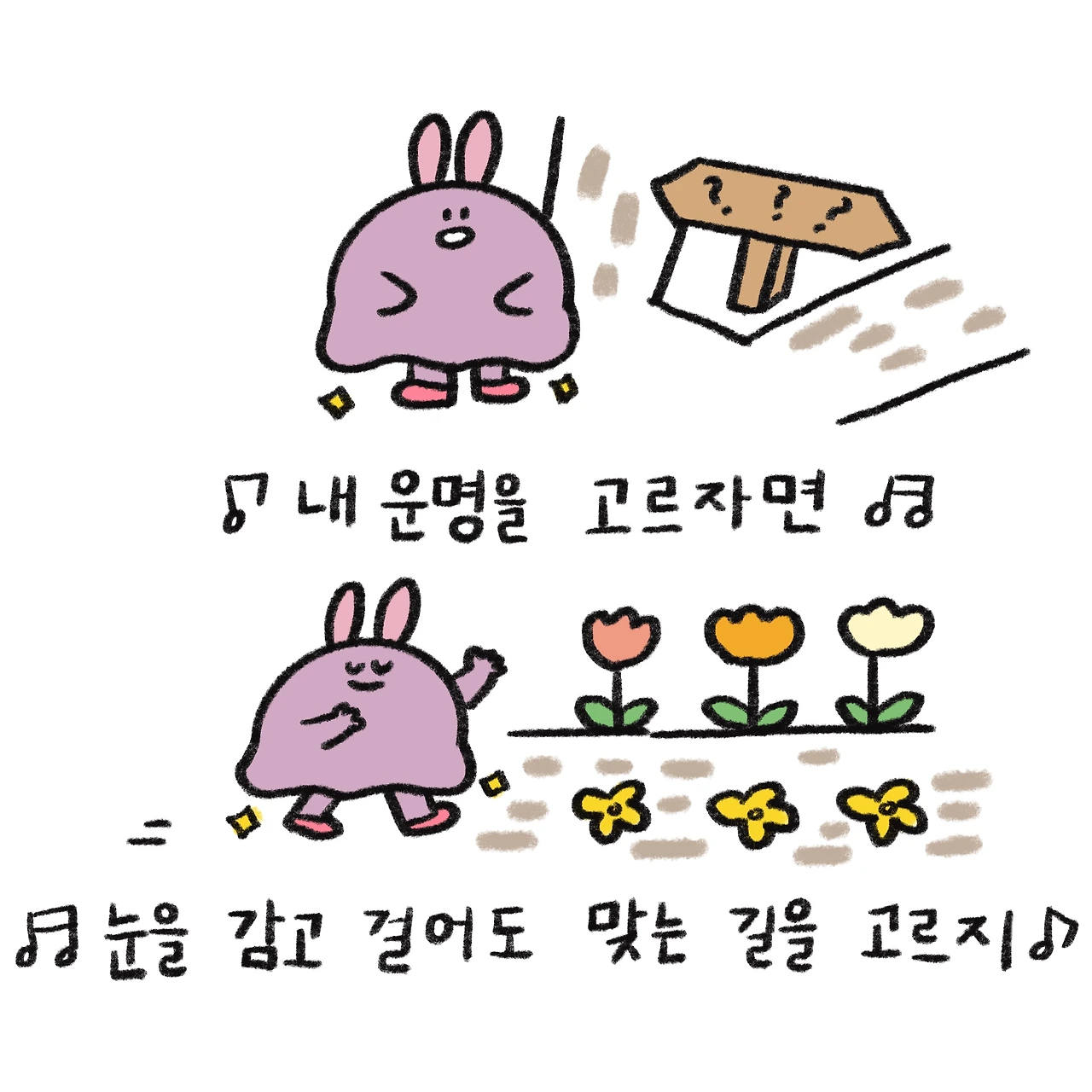 그런 우리에게도 이 메시지는 큰 위안이 된다. '내 운명을 고르자면, 눈을 감고 걸어도 맞는 길을 고르지.'