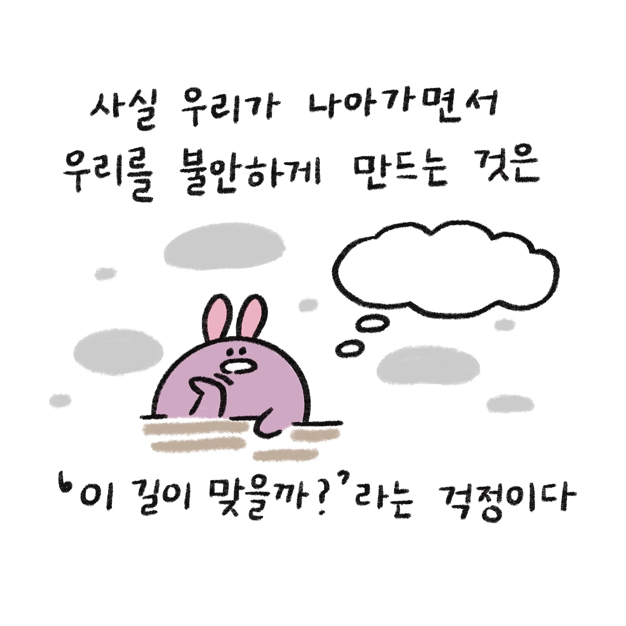내가 선택한 그 길이 결국은 최선의 판단이 될 거라는 것. 무작정 될놈될, 나는 될 놈이다. 하며 스스로를 응원하며 믿어봐 주는 건 어떨까? 한 치 앞도 모를 인생, 내 운명이 나를 어떤 좋은 길로 안내할지는 아무도 모르니 말이다. 지나치게 낙관적이라고 해도 좋다. 난 정말 그렇게 믿는다.