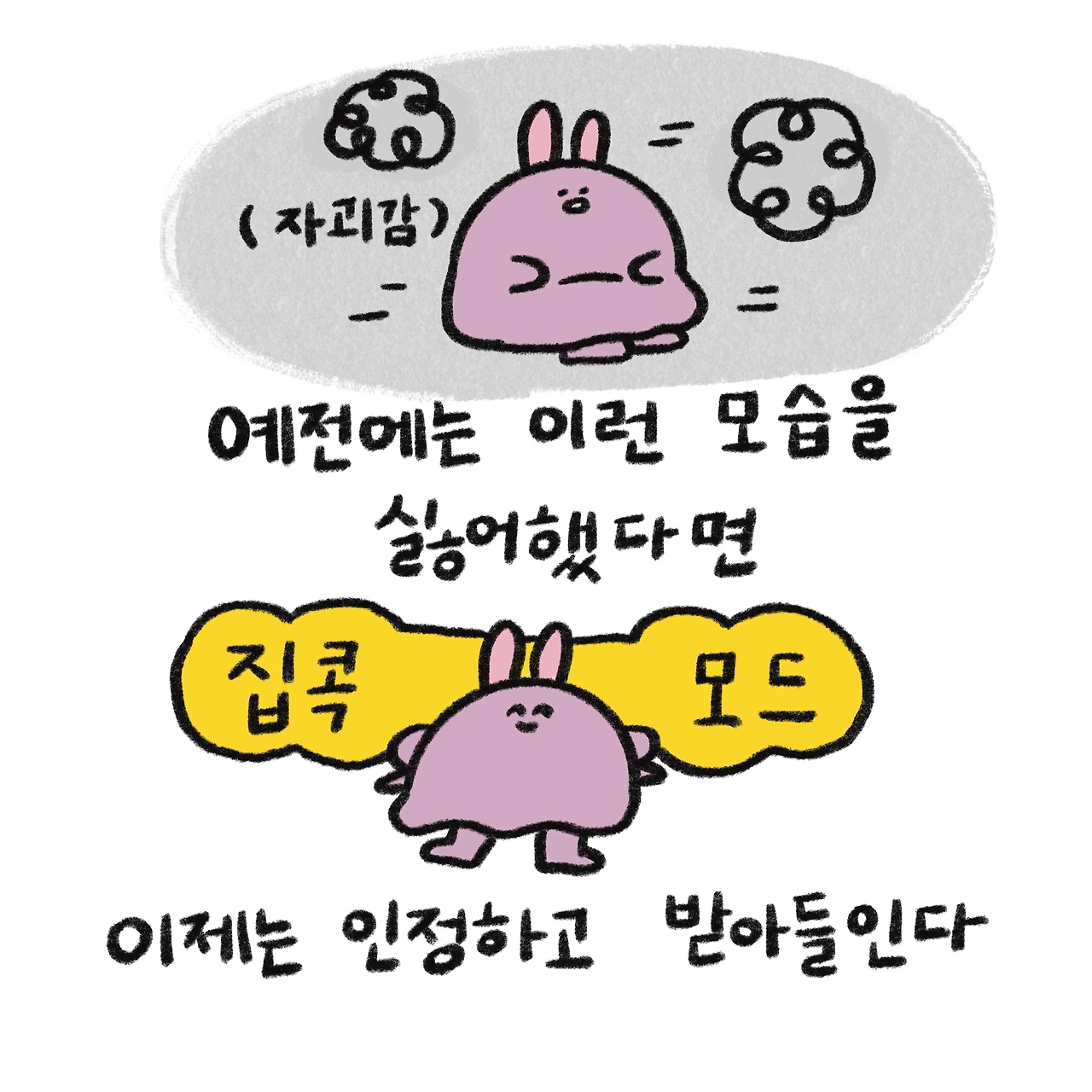 한때는 이런 모습이 부끄럽고 숨기고 싶었다. 아무도 만나지 않으려 하고 집에서만 있고 싶어 하는 내 모습이 초라해 보이고 좋지 않은 형태의 사람인 것 같다. 그래서 억지로 꾸며낸 모습을 하고 집 밖을 나섰다. 그렇게 해서 돌아온 것은 공허함이었지만.