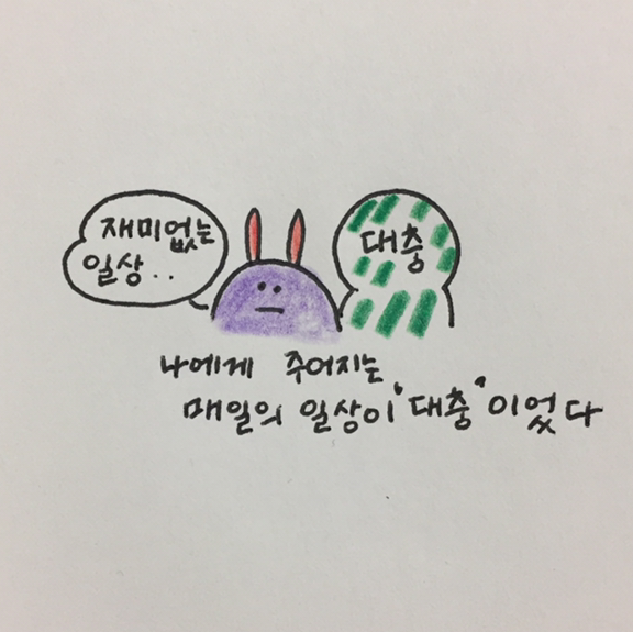 일상은 중요하다. 그 일상이 기본이 되어 다른 일을 할 수 있는 좋은 에너지가 생긴다. 일상을 즐겁게 받아들이고 즐길 줄 알아야 행복한 삶이 된다. 우리의 삶 대부분이 그 일상들의 집합체다.