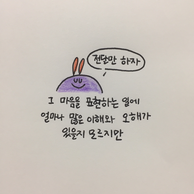 표현하는 일이 여전히 나에게는 낯설고 낯간지럽다. 그래도 나는 말하지 않으면 모르니까, 상대도 그렇다고 생각하면서 굳이 말을 해주고 싶다. 그 말이 상대에게 부담이 될 수도 있겠지만(부담이 안되길 진심으로 바라며) 오늘도 내일도 모레도 말하고 싶다.