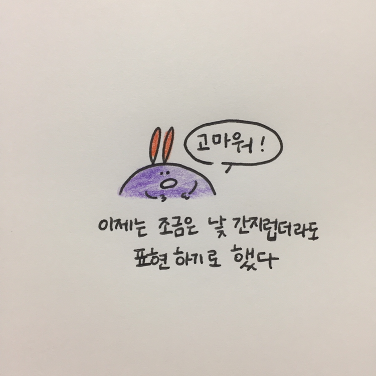 난 그동안 왜 이렇게 표현하는 것을 두려워했지? 내 마음을 표현하면 누군가 비웃을까봐? 결국에는 내 마음이 상대에게 들켜 놀림 당할까봐? 모르겠다. 그냥 나는 좋아하는 사람에게 좋아한다고, 고마운 사람에게 고맙다고 하는 것들이 너무나 어려웠다. 여전히 어렵긴 하지만 그 당시에는 표현하면 안돼! 라는 강박관념도 있었던 것 같다.