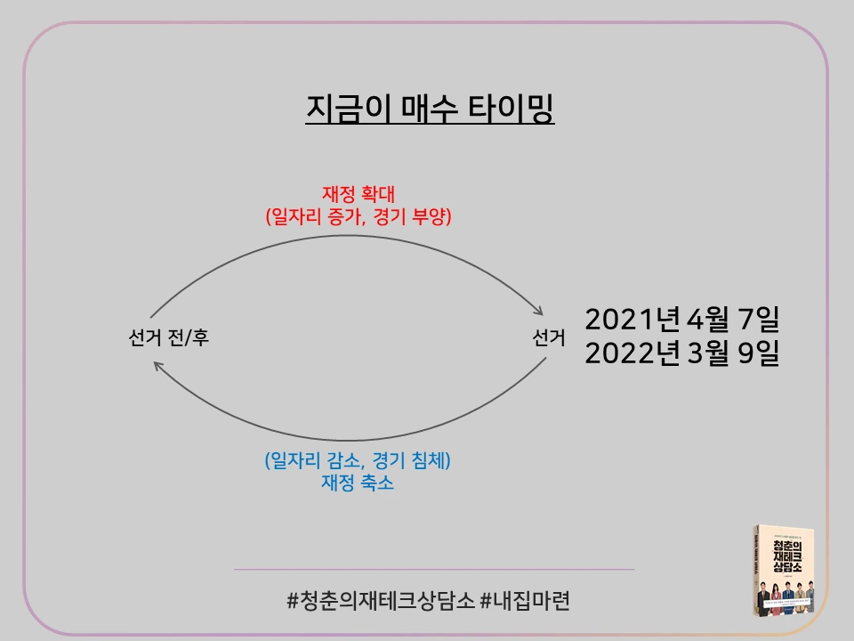 왜냐하면 2022년 3월 대통령 선거와 2021년 4월 보궐 선거가 있기 때문인데요. 선거 전에는 경기 부양을 위해 재정을 확대하게 됩니다. 여당 입장에서는 경기가 좋아야 선거에 유리하기 때문인데요. 이로 인해 재난지원금 외에 강력한 경기 부양책으로 기존보다 화폐가치가 더욱 하락하고 부동산과 주식의 가치는 더욱 오를 것으로 기대됩니다.
