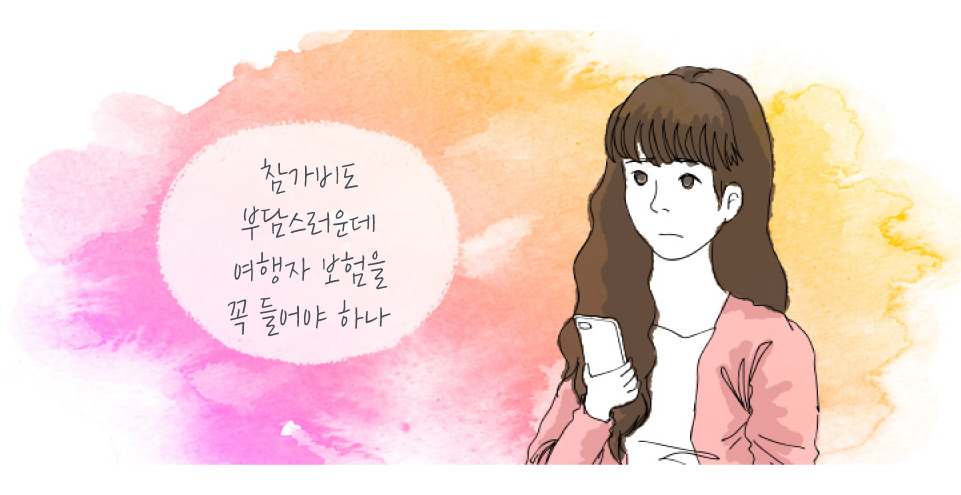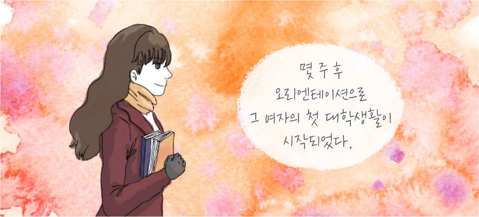 “엄마~ 나 오리엔테이션이라고 가평에 교육 들으러 가~ 알고 계셔요~” “딸~ 여행 가는데여행자 보험 하나 꼭 들고 가” “보험? 무슨 보험? 교육 들으러 가는데도 들어야 해?” “그럼. 날 추운데따뜻하게 입고 다니고~” 오리엔테이션을 다시 검색해보니 뉴스 기사에 학교별로 여러 사고가발생한 것을 확인한 그녀는 1만 5천 원도 부담스러운데 여행자보험을 가입을 꼭 가입해야 하나 하지 말아야 하나 고민한다. 결국, 검색을하다 아래와 같은 plus 팁을 발견한다. <여행자 보험가입할까 말까 고민하는 그녀에게> 보험이란 재해나 사고가 일어날 경우 경제적 손해를 대비하여 사고위협을 피하고자 사람들이 미리 일정한 돈을 적립하여 두었다가 사고를 당한 사람에게 일정 금액을 주어 손해를 보상하는 제도다. 따라서 여행자 보험은 말 그대로 여행자들이 사고의 위협을 피하고자 일정한 돈을 적립하고 사고를 당한 여행자들에게일정 금액을 주어 손해를 보상하는 제도다. 그리고 여행자보험 설명에 여행자라고만 되어있지 여행지라는 이야기가들어있지 않다. 그 이유는 보험사는 여행사처럼 여행지에서만 여행자를Care 하는 것이 아니라, 여행의 시작과 과정 그리고 끝 모든 부분을 Care 하기 때문이다. 그래서Guide보다 든든한 여행 Partner를 먼저 결정해야 한다. <좋은 여행자보험 고르는 3가지 plus 팁> 1. 오프라인보다는온라인 가입이 좋다. 가격도 저렴하고 여러 금융 상품들을 비교해보고 간단하게 가입할수 있다. 백 번 듣는 것보다 한 번이라도 직접 비교해보는 것이 좋다. 2. 개인보다는 단체로가입하는 것이 좋다. 다다익선(多多益善), 많으면 많을수록 더 좋다는 뜻으로 보험 가입자가 많으면 많을수록 할인 혜택이 당연히 커진다. 위에서 알아본 보험의 정의처럼 사고의 위협을 피하고자 적립하는 금액이 커질수록 보험사에서 가지는 부담이 낮아지기때문에 그 혜택이 가입자에게 돌아가 가입비가 더 저렴해진다. 3. 보상 혜택을보고 결정해라. 휴대품 손해에 있어 어떤 보장을 받을 수 있는지 점검해야 한다. 단, 여행자 보험에서 휴대품 손해라고 해서 잃어버린 물품을 보상한다는생각은 하면 안 된다. 도난 혹은 파손이라는 손해를 보상하는 것이지 잃어버린 것 즉, 분실은 손해라고 보지 않는다. 분실은 여행자의 부주의다. 그리고 여행가는 지역에 따라 발목염좌 등의 다칠 수 있는 내용도 달라지니 보상 혜택을 확인하고 최종적으로 결정해야한다. plus 팁을 얻은정화는 단체 보험이 더 저렴하게 갈 수 있다는 사실에 괜히 마음이 불편해진다. 그리고 이내 문자를 쓰다 지우기를 반복한다. 그리고 결심이 선 그 여자는 문자를 보낸다. 선배님 안녕하세요 궁금한 것이 있어서 문자 드립니다. 혹시 보험 가입되어 있나요? 단체 보험이 더 저렴하게 가입할 수 있다고 해서요 아니면 제가 별도로 가입하려고 하는데 고민이 되네요. 18학번 신입생 정화 드림 들리지 않는 메아리 소리를 기다리는 것처럼, 울리지 않는 스마트폰을 보며 발을 동동거리는 정화, 몇 분이 지났을까답변이 왔다. 참석 인원 수 확인되면 슈퍼 울트라 초프리미엄 단체 여행자 보험으로 가입할 예정입니다 들국화가 부릅니다 그대여 아무 걱정 하지 말아요~ 우리 함께 오티 갑시다~ 연희학생회 춘월 드림 몇 주 후, 오리엔테이션으로그 여자의 첫 MT가 시작되었다. 든든한 파트너, 즉보험 덕분인지 등산도 걱정없이 잘 해냈다. 그러나 새로운 환경에 놓인 사람들에 대한 환경 적응을 위한교육이라던 오리엔테이션은 족구, 발야구 등 다양한 구기 종목을 체험하고, 태진아란 가수의 진진자라 진진자만 100번 들었다. 그렇다. 그 여자, 공대라는환경에 제대로 적응하게 되었다.