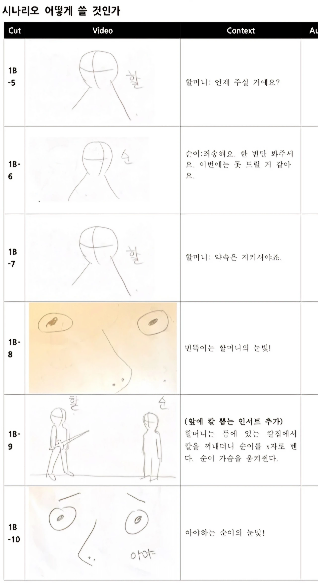 종찬: 시나리오 어떻게 쓰는 건지 모르겠어.