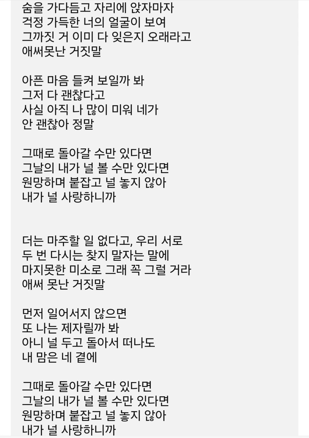 마지못한 미소로 꼭 그럴 거라고 애써 못난 거짓말.