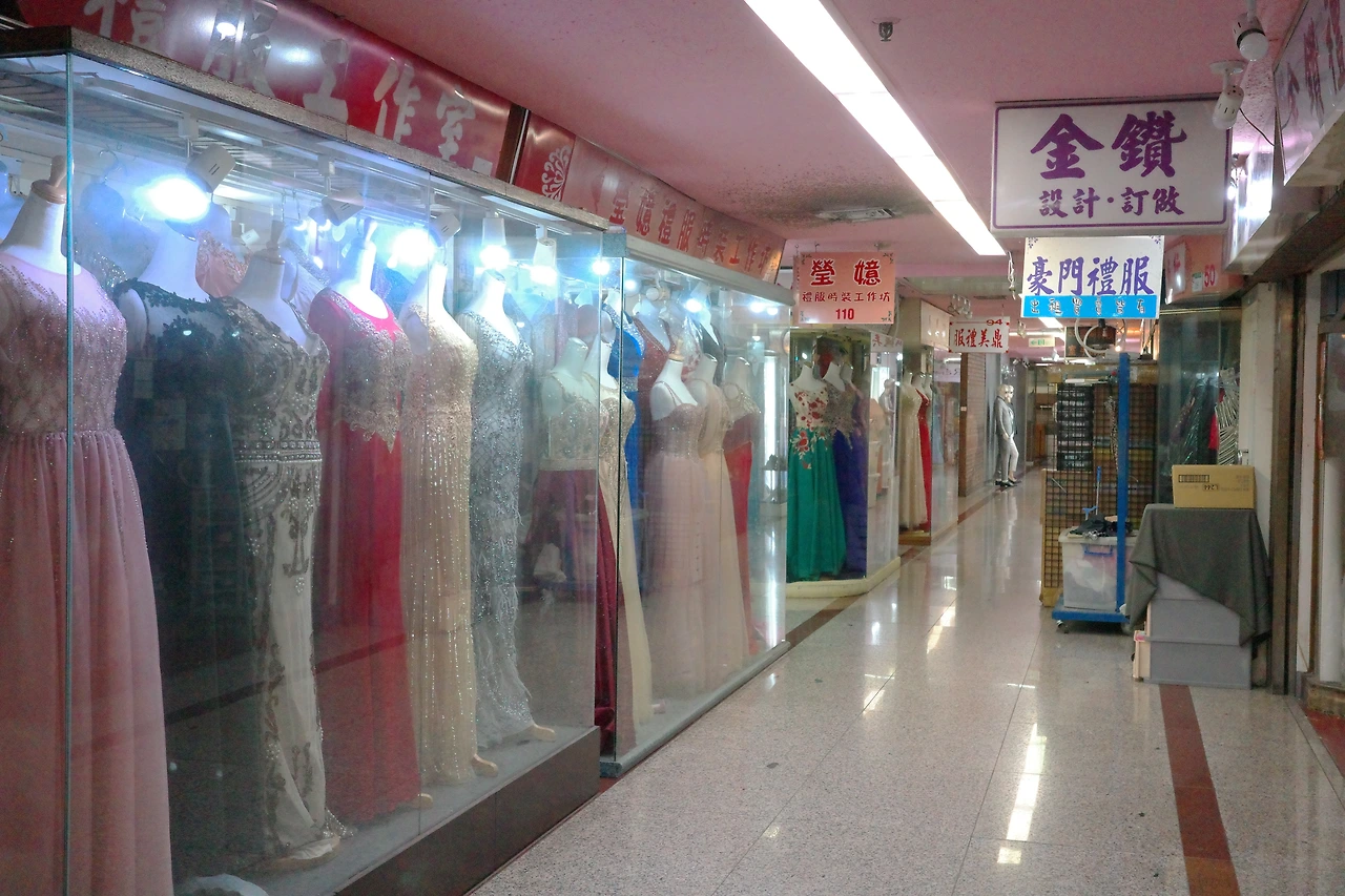 과거에는 여기가 시먼딩의 '패션 중심지'였다고 하죠. 온갖 수입 상가와 화려한 옷가게, 잡화점, 양장점, 예복 전문점 등이 입점해 있었다고 합니다. 그런데 지금은 들어가보면 꽤나 을씨년스러운 모습입니다. 1층에는 휴대폰 매장, 인형뽑기 기계가 대부분 들어차 있었고, 2층은 '무대용 의상' 가게들이 몇 있었지만, 절반 이상 문이 닫혀 있었습니다.