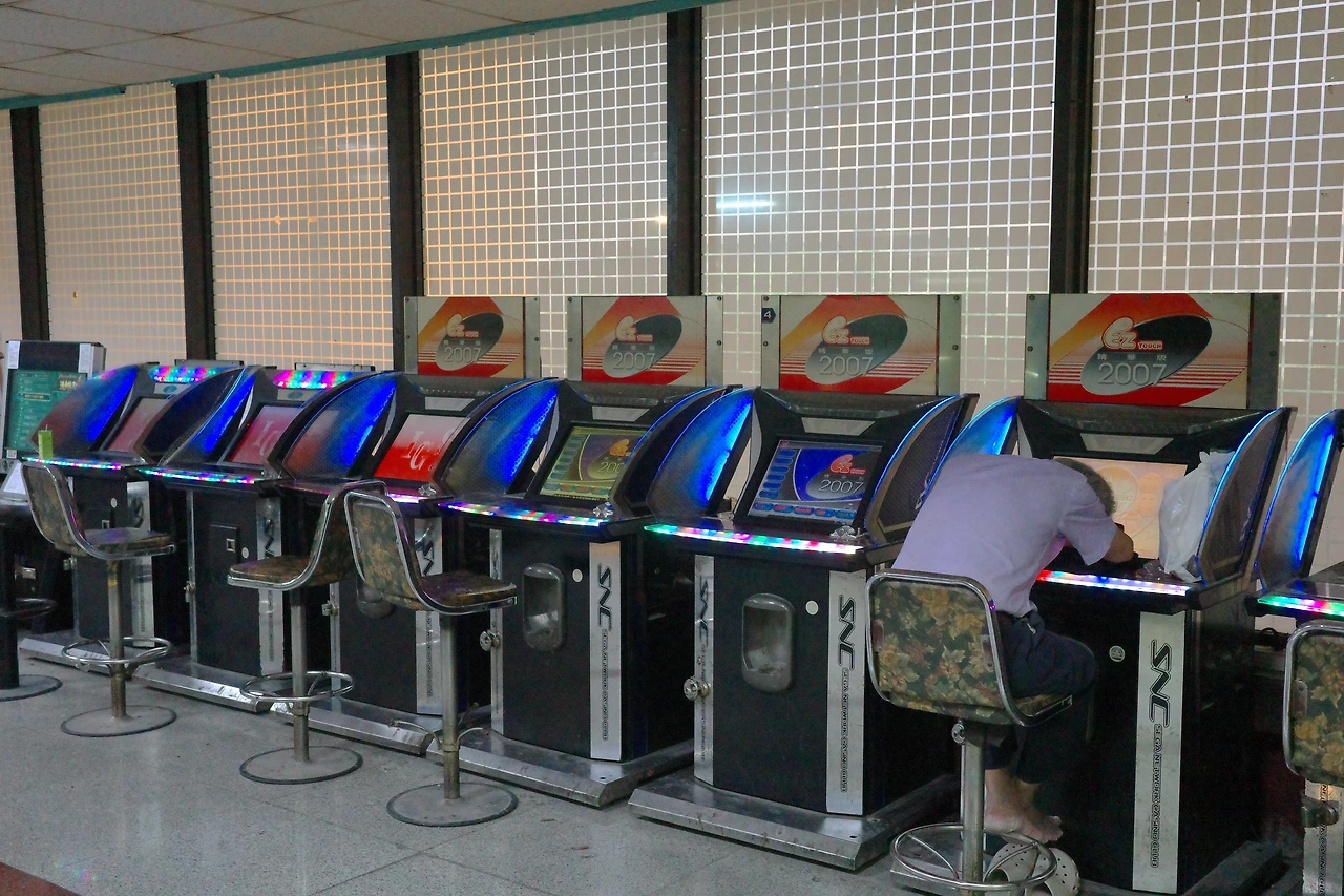 3층은 '성인' 오락실이 들어서 있는 것으로 추측이 되는데요. 바깥쪽부터 아저씨가 지키고 있어서 안쪽으로 들어가보지는 못했습니다(중국어 소통 실패). 바깥쪽에 세워 둔 오락기 앞에서는 어떤 분이 엎드려 주무시고 계셨네요. 담배연기 전 퀴퀴한 냄새, 등골이 조금 오싹해졌습니다. 뭔가 심상치 않은 분위기... 갑자기 다른 세계에 진입한 듯한 느낌이 강하게 들죠..