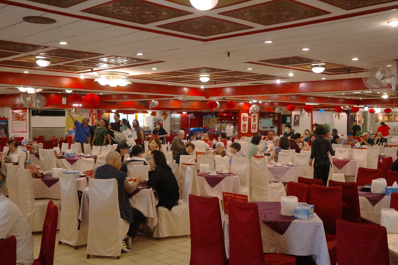 입장하면 이렇게 거대한 붉은색 홀이 나옵니다. 휴대폰으로 광각으로 한 번 찍었어야 하는데, 아직 초보 블로거라 놓친 사진들이 너무 많네요 ㅠㅠ 여튼 엄청난 규모의 홀입니다. 예전에 홍콩에 가면 쉽게 찾아볼 수 있었던 광동식 딤섬 가게가 되겠습니다.
