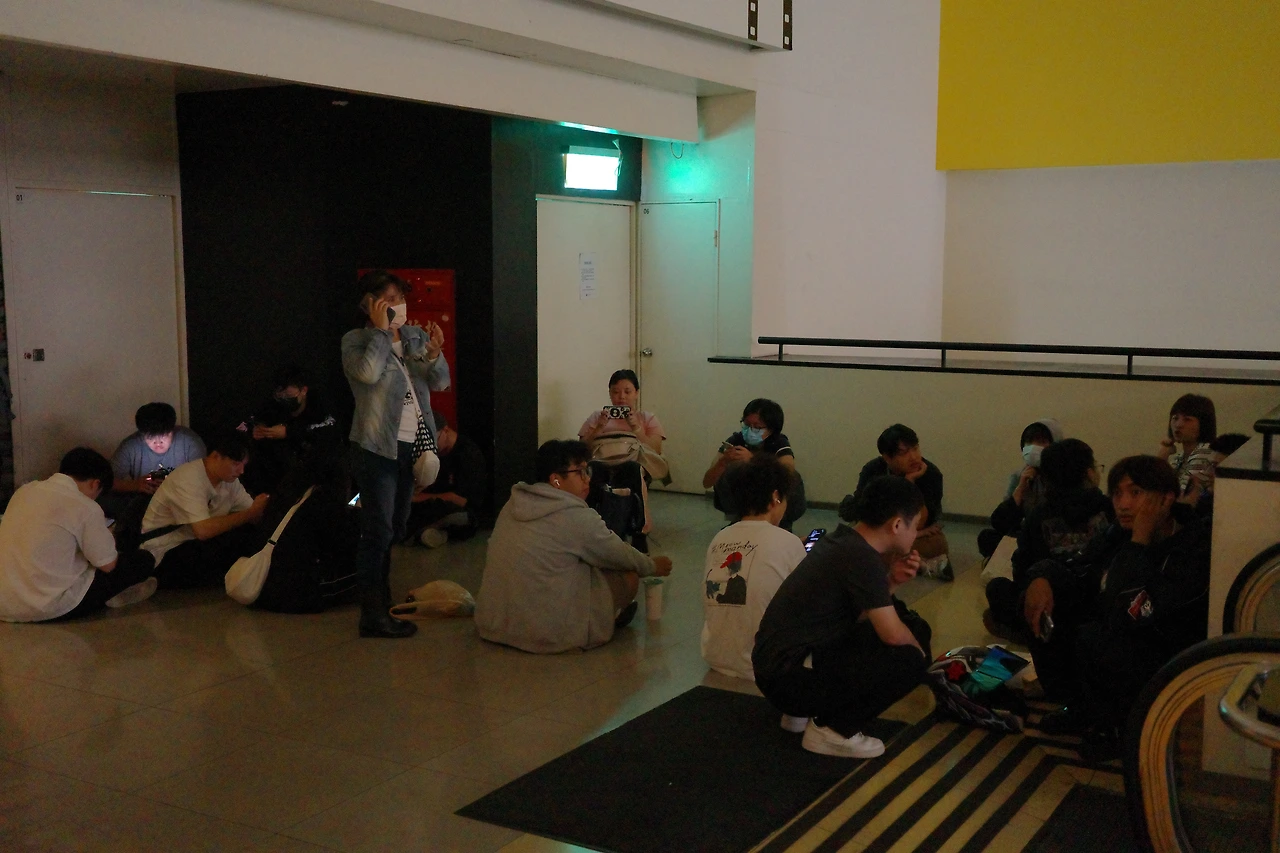 알고보니 이 4층은 정상적으로 운영되는 극장이었고, 이 줄은 애니메이션 1인 1매 현장판매밖에 하지 않는 '체인소맨' 극장판 표를 사기 위해 기다리던 사람들이었네요. 티켓 오픈 시간 몇 시간 전부터 기다리는 것이었을 뿐이었습니다.
