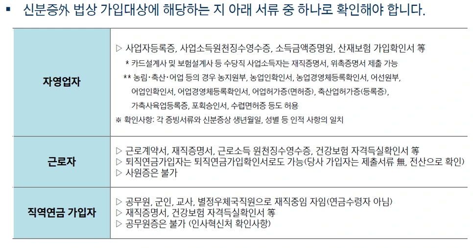 이번에 개정된 가입 대상자는 아래 표와 같다.