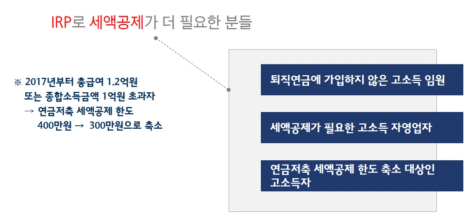 이번 개정은 그동안 IRP가입이 되지 않았던 고소득자들이 가입할 경우
