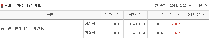 적금을 대체할 수 있는 펀드로 흥국멀티플레이자4(채권)을 예시로 들어 비교해 보겠다.