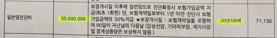 [사례 ] 40세 남자, 1급, 100세 만기 순수 보장형, 암진단금 5,000만 원