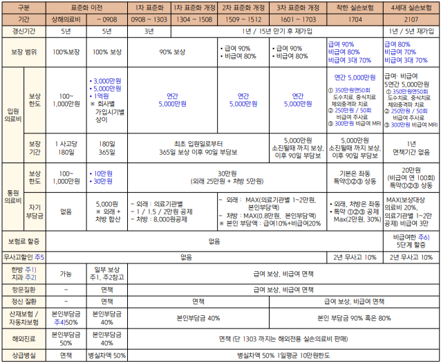 실손보험은 가입시기에 따라 보장비율과 공제금, 보장 범위에 차이가 있다.