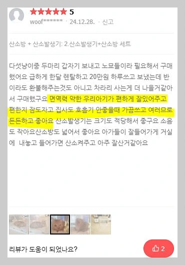 가정용 산소발생기나 산소방을 마련해주면 다음과 같은 장점이 있어요: