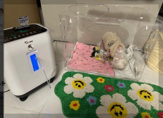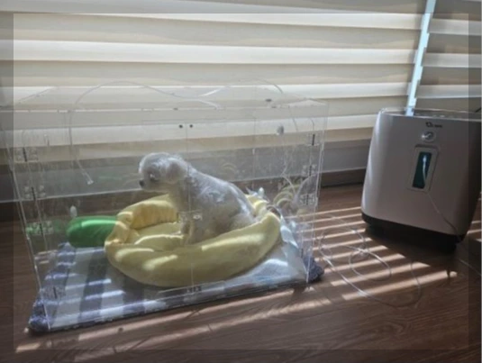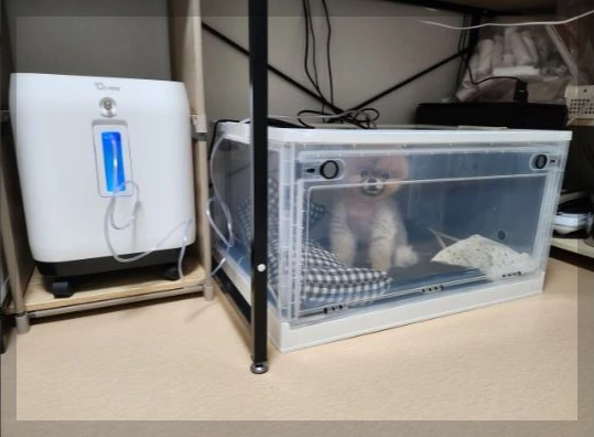 4단계(최악 상태): 호흡곤란이 심해 입원치료가 대부분 필요하며, 이때는 병원 산소 케이지가 먼저이긴 하지만 퇴원 후에도 집에서 산소 케어를 꾸준히 해주면 예후가 훨씬 좋아집니다.
