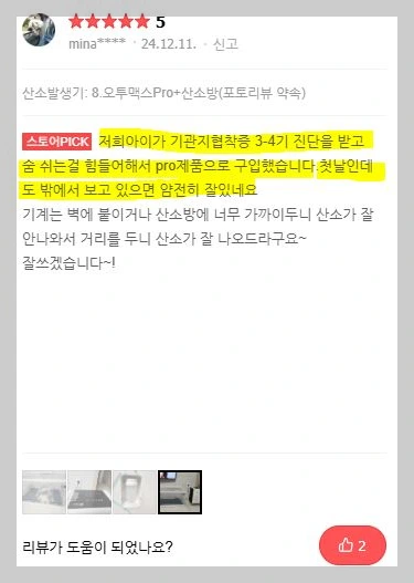 <산소특공대>의 오투맥스 산소발생기를 적극 추천해주셨습니다!