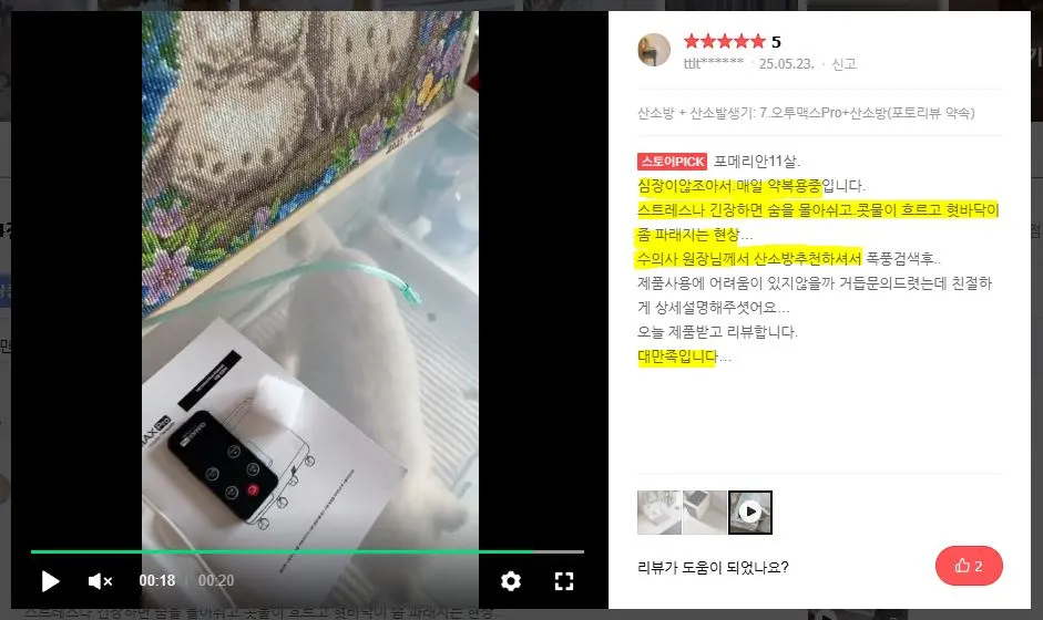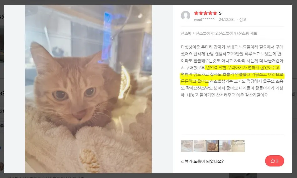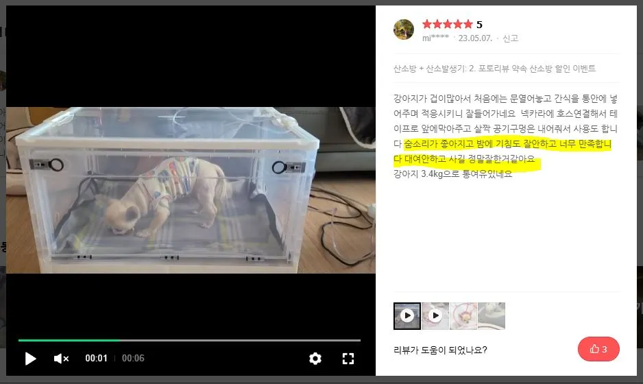 그리고 강아지나 고양이등 동물에게 있어서 고농도 산소가 공급되는 것이