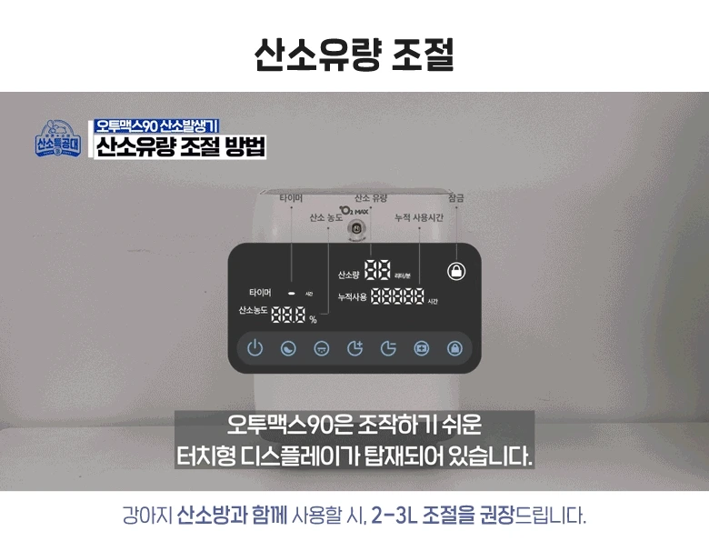 누구나 쉬운 사용법: 복잡한 과정 없이 버튼 하나로 간편하게 우리 아이 산소 케어를 시작할 수 있습니다.