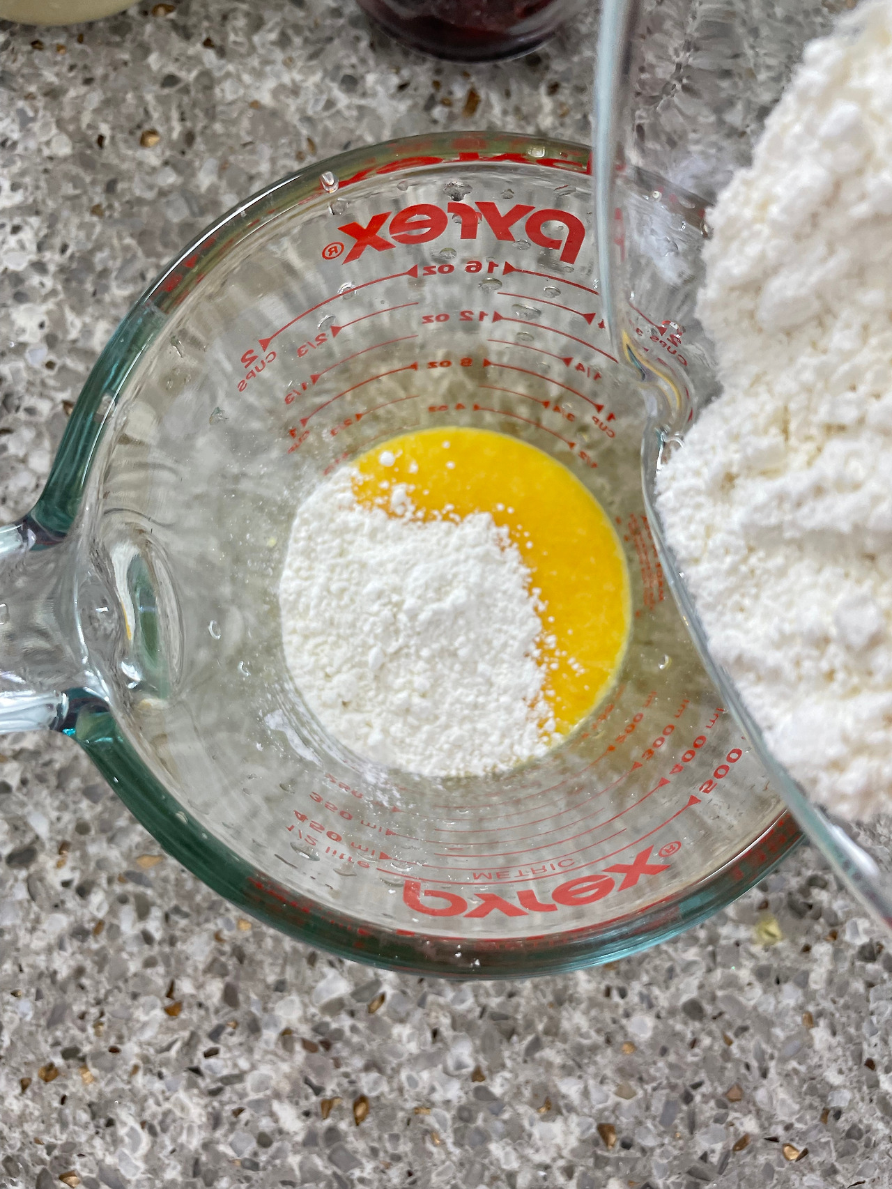 6. 플레인 요거트 넣기 (4큰술 넣었는데.. 농도가 너무 물처럼 되어 2큰술만 넣을 걸 후회함. 하지만 박력분으로 농도를 맞춰주면 다시 살릴 수 있음)