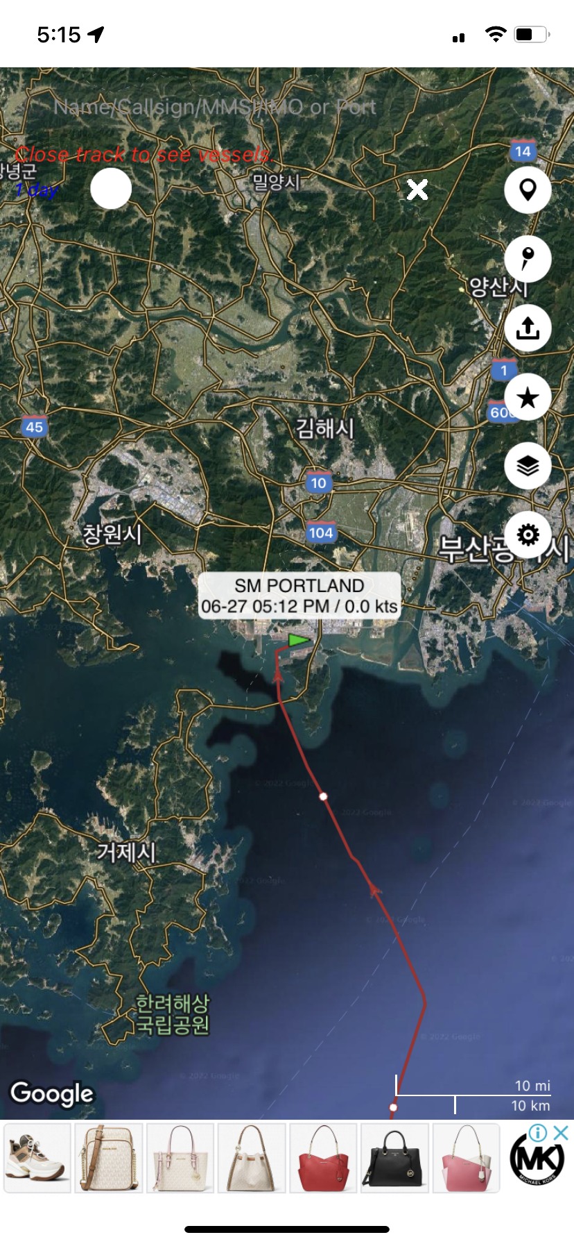 검색한 배가 부산에 없을 수 있습니다. 우체국 홈페이지에서 보면 제 짐이 배에 실리는 날이 표시되어 있습니다. 그 날짜에 택배가 실리니 그날 이후부터 배를 추적하면 됩니다.
