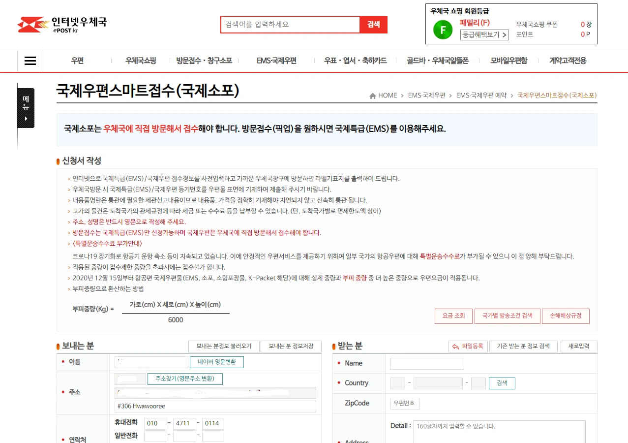 국제우편스마트접수 창구: https://ems.epost.go.kr/front.SmEmsApply1100s.postal