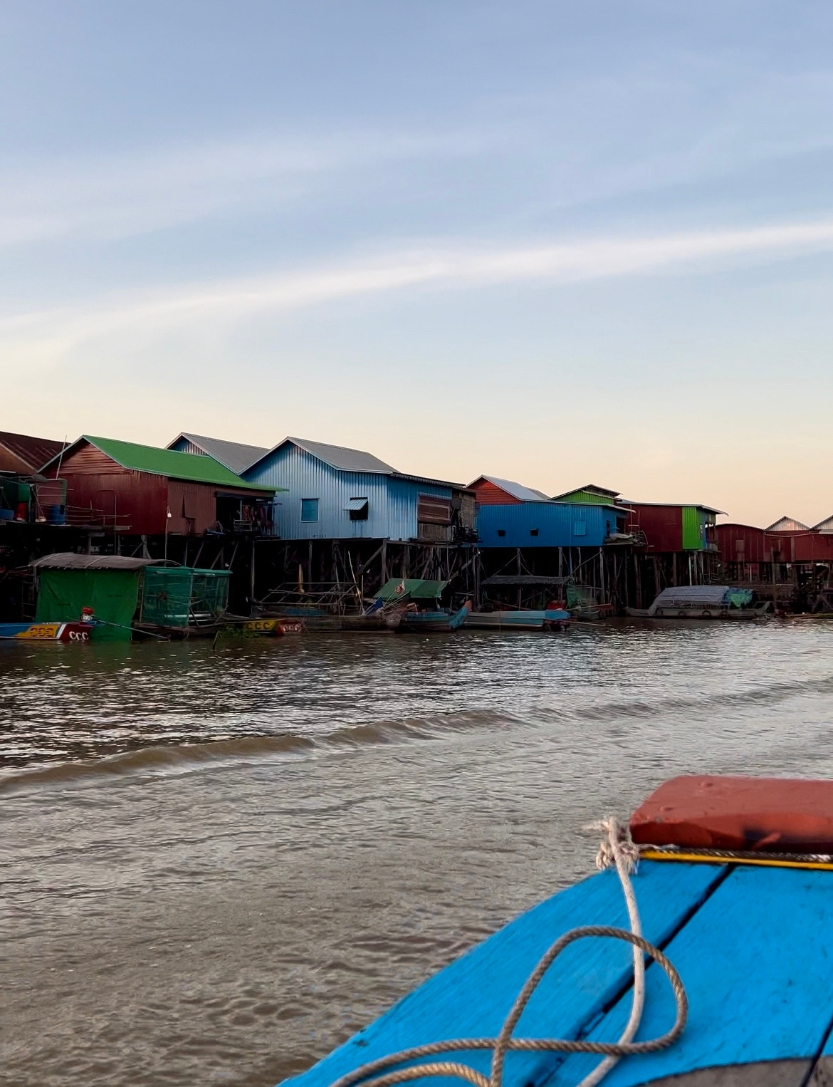 씨엠립에는 세 개의 플로팅 빌리지가 있는데, 그중에서도 가장 규모가 큰 캄퐁 클랑은 시내에서 한 시간 반을 차를 타고 가야 하는 로컬 중의 로컬 지역이다. 나무와 철판으로 얼기설기 지어진 집이 강어귀부터 빼곡히 열을 맞춰 들어차 있는 모습이 진짜 물 위에 떠있는 마을 같았다.