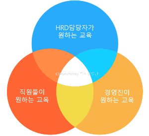정말 정말 정말 쉽지가 않습니다. 영업이나 마케팅 재무 직무처럼 수치로 무언가 나타나지는 않는 또 무형의 콘텐츠나 지식을 효과적으로 전달하며 모두를 만족시켜야 한다는 것이 참으로 쉽지 않습니다. 그래서 교집합을 잘 찾아내는 사람이 그만큼 각광을 받게 되고 경쟁력이 생기는 셈인 것이겠죠. 너무 아직 갈길이 너무 멉니다. 혹여 이 글을 읽으시는 HRD 담당자가 있으시다면 어느 두 가지만이라도 교집합에 들어오는 교육들로 성공을 이뤄보시면서 차근차근 나아가 궁극적으로 세 가지가 모두 충족되는, 또 그 영역을 점차 넗혀가실 수 있는 훌륭하신 분들이 많아지기를 응원하며 이 글 마치겠습니다.