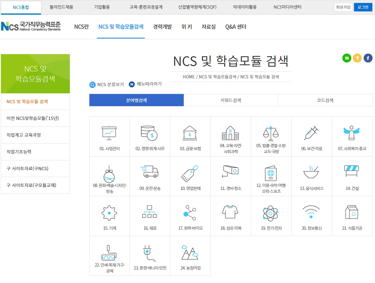아니면, NCS 직무표준에 대해서 검색을 해보시는 것도 직무탐색에 도움이 됩니다. '직무표준/학습모듈' 검색이나 '교육훈련과정설계' 등을 참고해보아도 직무별로 요구되는 역량등에 대해서 충분히 검색을 해볼 수 있으니 알아두시면 좋습니다.